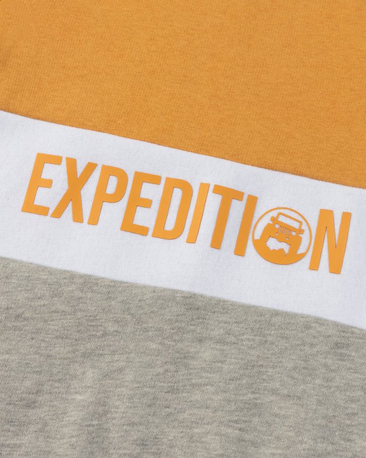 A cozy fleece sweatshirt with a bold color-block pattern, finished with fine rib trims for lasting warmth and a sporty everyday look.