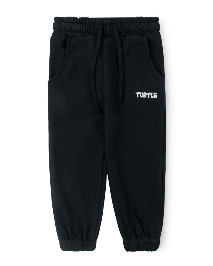 Soft terry joggers with drawstring waist, ribbed cuffs, side pockets, and a clean signature print for effortless modern wear.