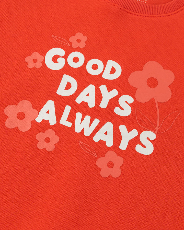 A cozy fleece pack designed with ribbed trims printed sweatshirt, paired with adjustable waist joggers, blending cheerful style with modern casual comfort.