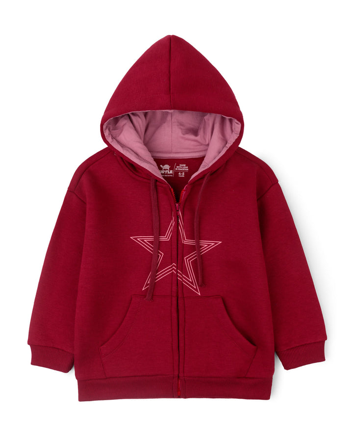 A cozy fleece hoodie featuring an easy zipper fastening, contrast hood lining, outlined star graphic, kangaroo pockets, and ribbed cuffs for everyday style.
